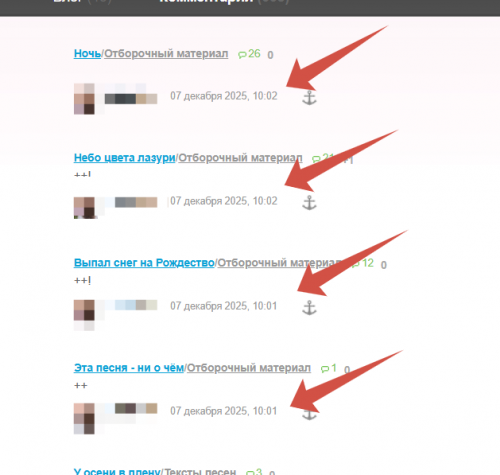 и да, очень-очень редко бывает, что текст ЦЕПЛЯЕТ. Тогда слушаю. Бывало, что даже сохраняла трек. Для себя. Ещё один показатель, что мне очень «зашло» — пишу отзыв. Вот, например, из Вашего творчества пока что до глубины души ничего не зацепило. Хотя многие тексты понравились. Так что я самый внимательный «продюсер» Во) Мне даже понравился Ваш термин.