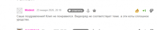А кто навязывает? Люди высказывают мнение. И не я одна так считаю, почитайте выше. Если принимаются только восторги, пусть отключат комменты и собирают лайки и дальше лепят хоть котиков, хоть песиков. Песня не моя, слава богу. С моей всё достойно