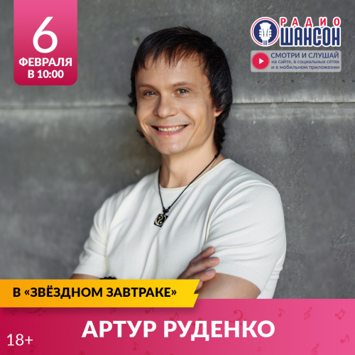 Слушайте и смотрите «Звездный завтрак» с Артуром на радио «Шансон» в пятницу 6 февраля с 10:00 до 11:00 по московскому времени.