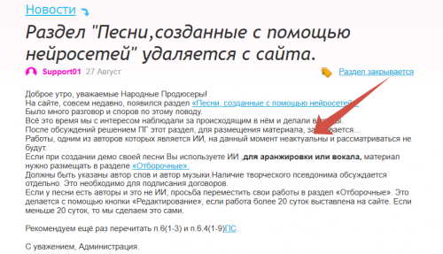 Суппорт писал много раз авторам замечание, что музыка, где автор ИИ- не рассматривается и удалял такие произведения. Аранж и вокал они принимают, ну так писал этот суппорт